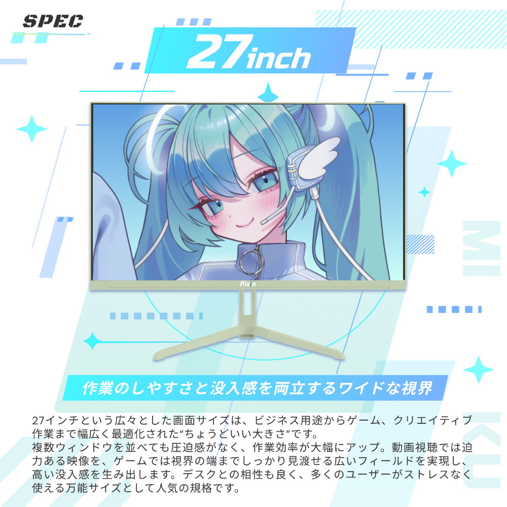 PX278 WAVEは、27インチWQHD Fast IPSパネルを搭載した高画質なゲーミングモニターです。1ms(GTG)の高応答速度と180Hzという高リフレッシュレートにより、ゲームプレイも快適に。