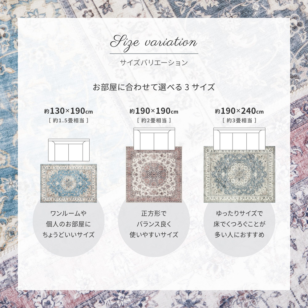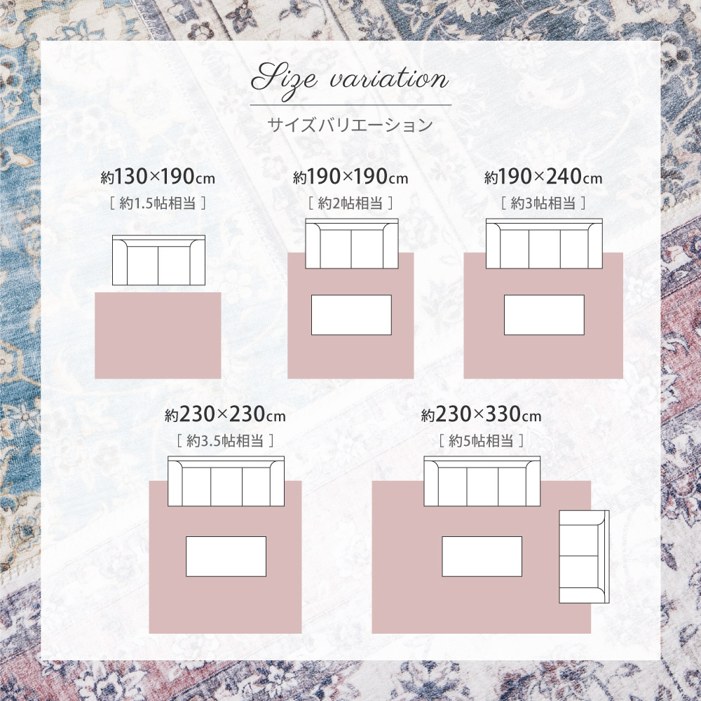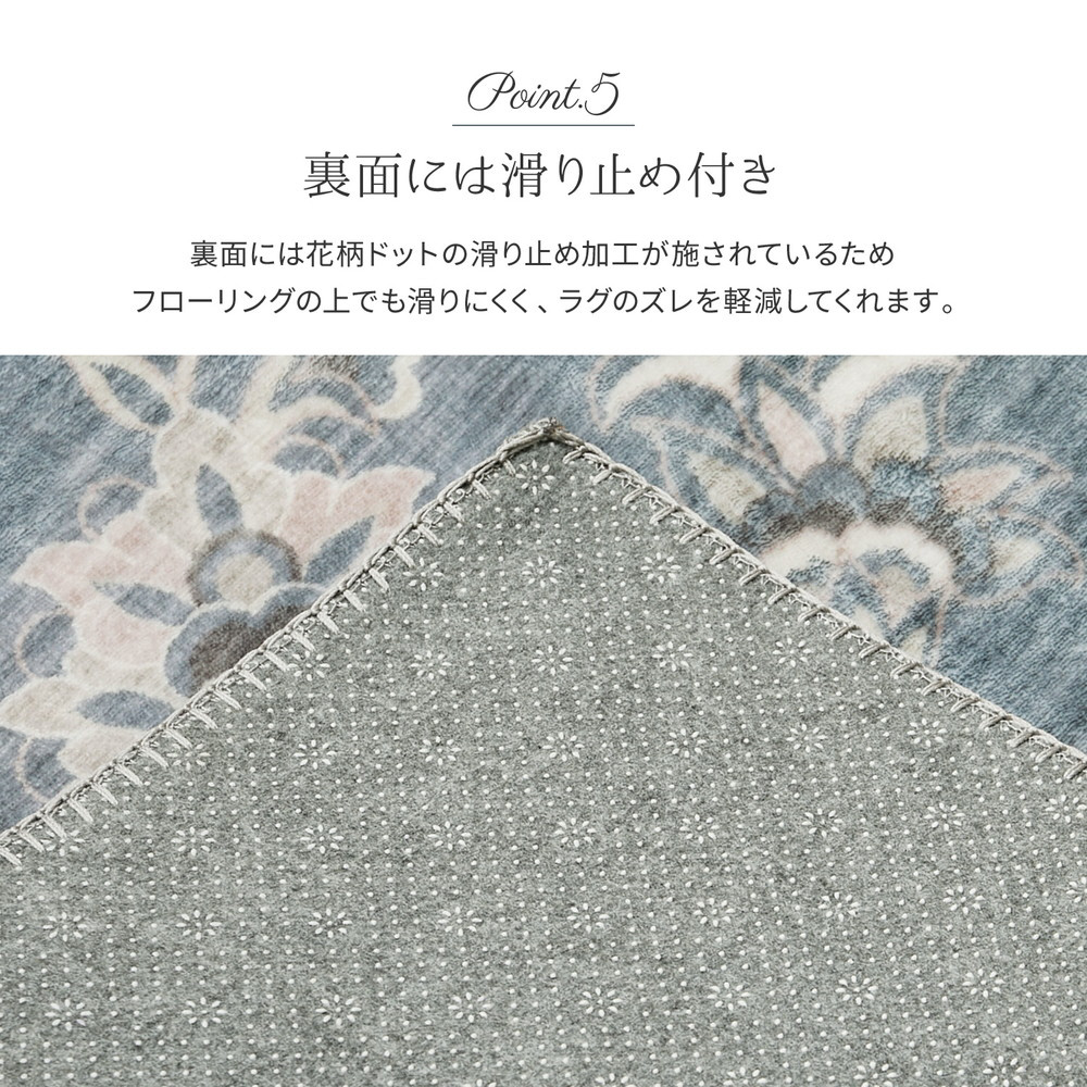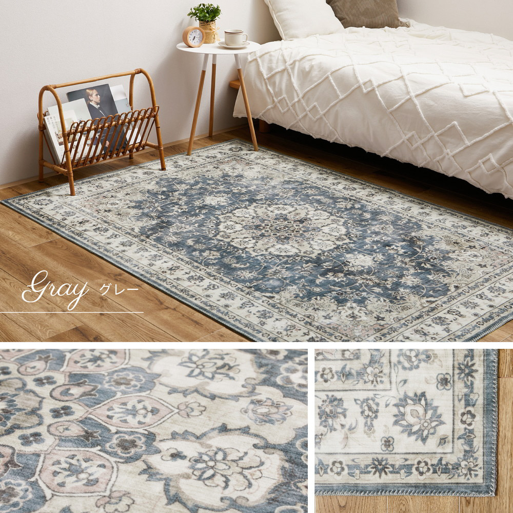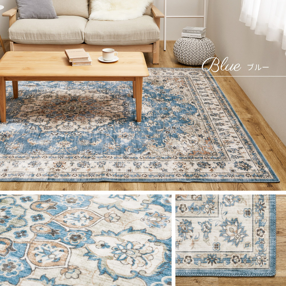 転写プリントラグ カメオ 約130×190cm ブルー