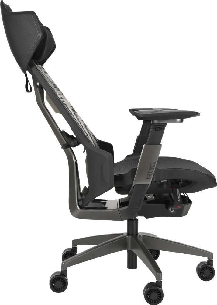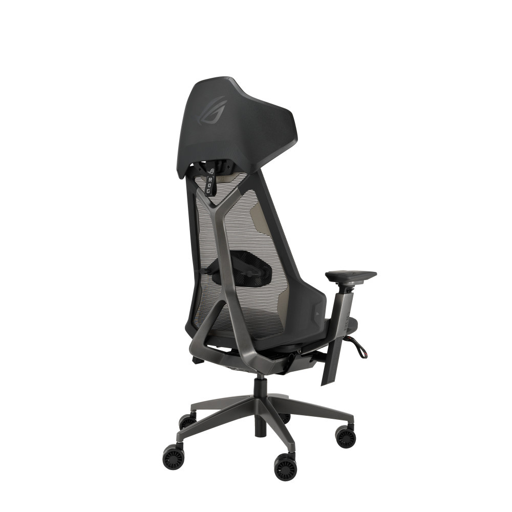ROG Destrier Ergo ゲーミングチェアは、未来感あふれるサイボーグ風デザイン、多彩なシート調整で理想的な姿勢をサポートし、モバイルゲーム向けのアームサポートモードや、没入感を高める遮音パネルを搭載しています。