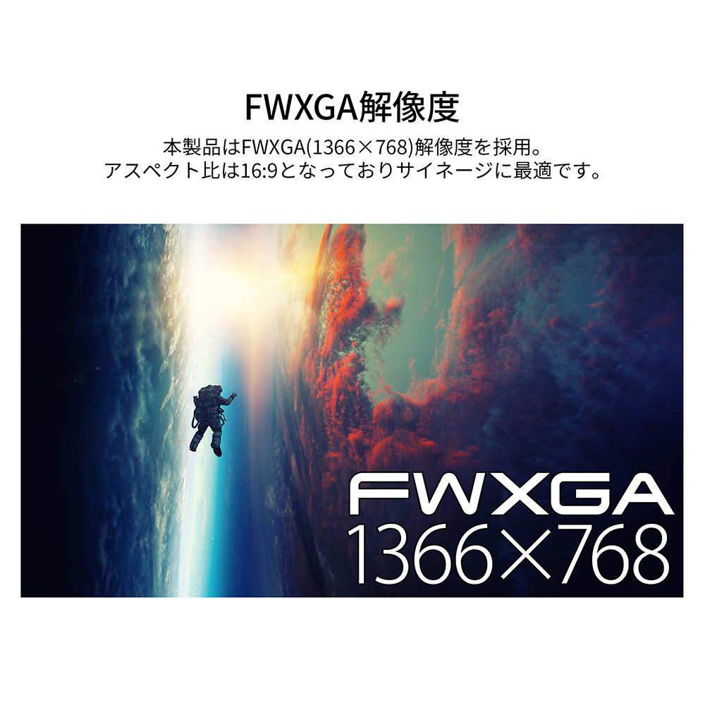 32インチのIPSパネルを搭載し、FWXGA(1366×768)解像度に対応した液晶モニターです。あらゆる角度から見ても色やコントラストの変化がおきにくいIPSパネルを搭載し、広視野角上下左右178°を実現します。