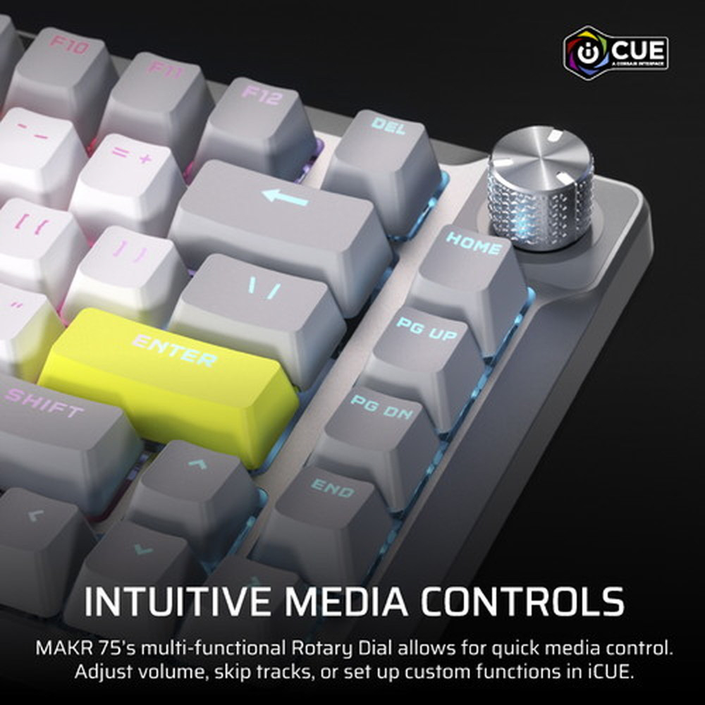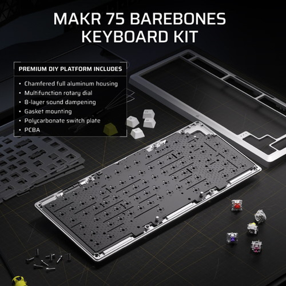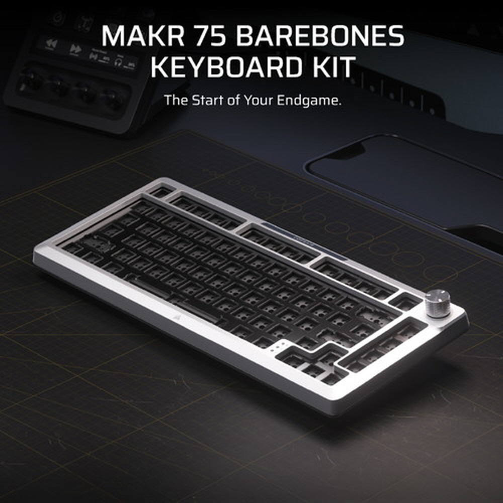 CORSAIR MAKR 75 ベアボーンキーボードキットは、ゲーム終盤を目指した旅の究極の出発点です。2025年度 iF デザイン賞を受賞したこのキーボードは、エレガントな機械加工された曲線を持つ高級フルアルミニウムフレーム、優れたスタイルと革新的なデザインで際立つ 75% フォームファクターの DIY キーボードが特徴です。両方のいいとこ取りで、キーボードエンスージアストのための無限にパーソナライズできるオプションと音響特性、そしてゲーマーが求める最高のパフォーマンス。互換性のある 5 ピン・キースイッチにホットスワップし、AXON 経由で 8,000Hz のハイパーポーリングで強化します。究極のタイピング体験をお楽しみください。ガスケットマウントにより、キーを押す感触が驚くほど良くなり、8 層になっている消音により、タイピング音も驚くほど良くなっています。