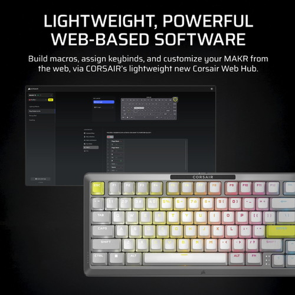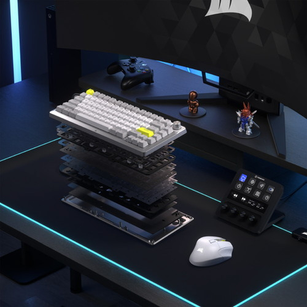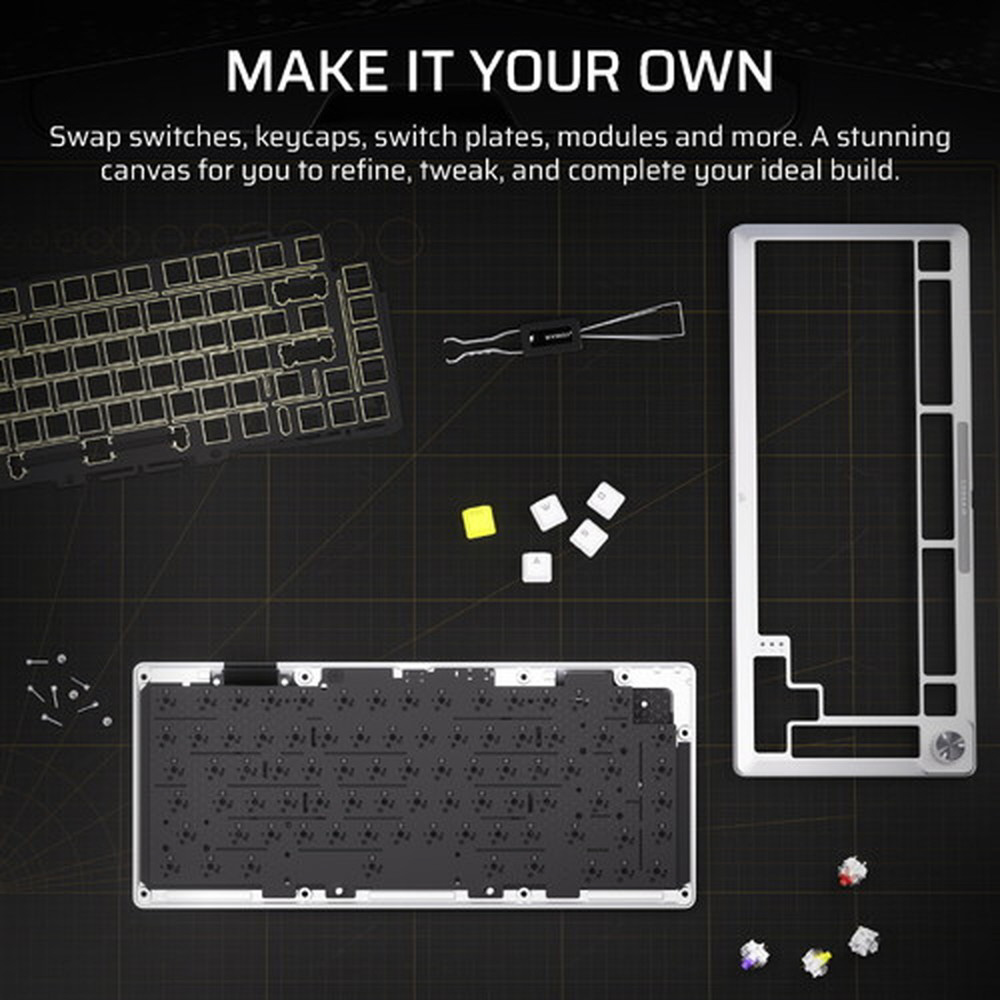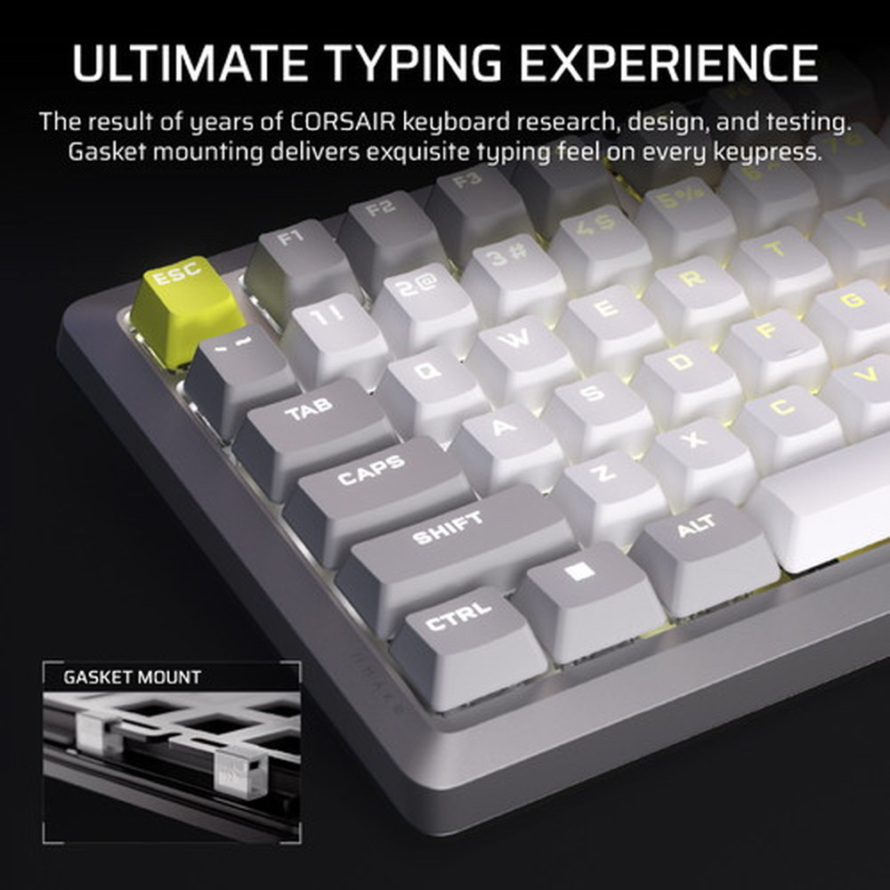 CORSAIR MAKR 75 ベアボーンキーボードキットは、ゲーム終盤を目指した旅の究極の出発点です。2025年度 iF デザイン賞を受賞したこのキーボードは、エレガントな機械加工された曲線を持つ高級フルアルミニウムフレーム、優れたスタイルと革新的なデザインで際立つ 75% フォームファクターの DIY キーボードが特徴です。両方のいいとこ取りで、キーボードエンスージアストのための無限にパーソナライズできるオプションと音響特性、そしてゲーマーが求める最高のパフォーマンス。互換性のある 5 ピン・キースイッチにホットスワップし、AXON 経由で 8,000Hz のハイパーポーリングで強化します。究極のタイピング体験をお楽しみください。ガスケットマウントにより、キーを押す感触が驚くほど良くなり、8 層になっている消音により、タイピング音も驚くほど良くなっています。