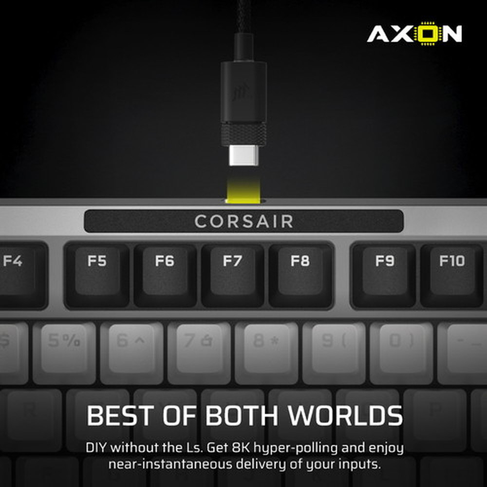 超個性的なキーボードが欲しいからといって、性能を犠牲にする必要はありません。CORSAIR AXON ハイパープロセシングテクノロジーが 8,000Hz* のハイパーポーリングで入力をほぼ瞬時に伝達します。