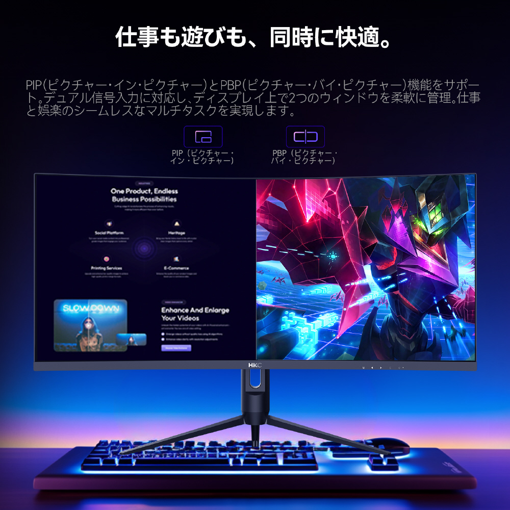 視界ごと包み込まれる“曲面超ワイド世界”。映画のような没入を、あなたのデスクに。