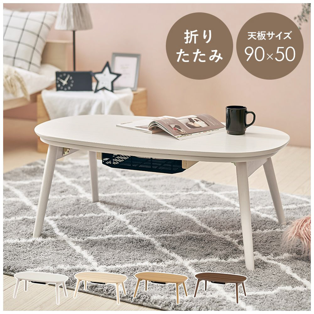 カジュアルコタツ(折脚)幅95cm カルミナ950WS ホワイトウォッシュ [約50×90cm /円形]