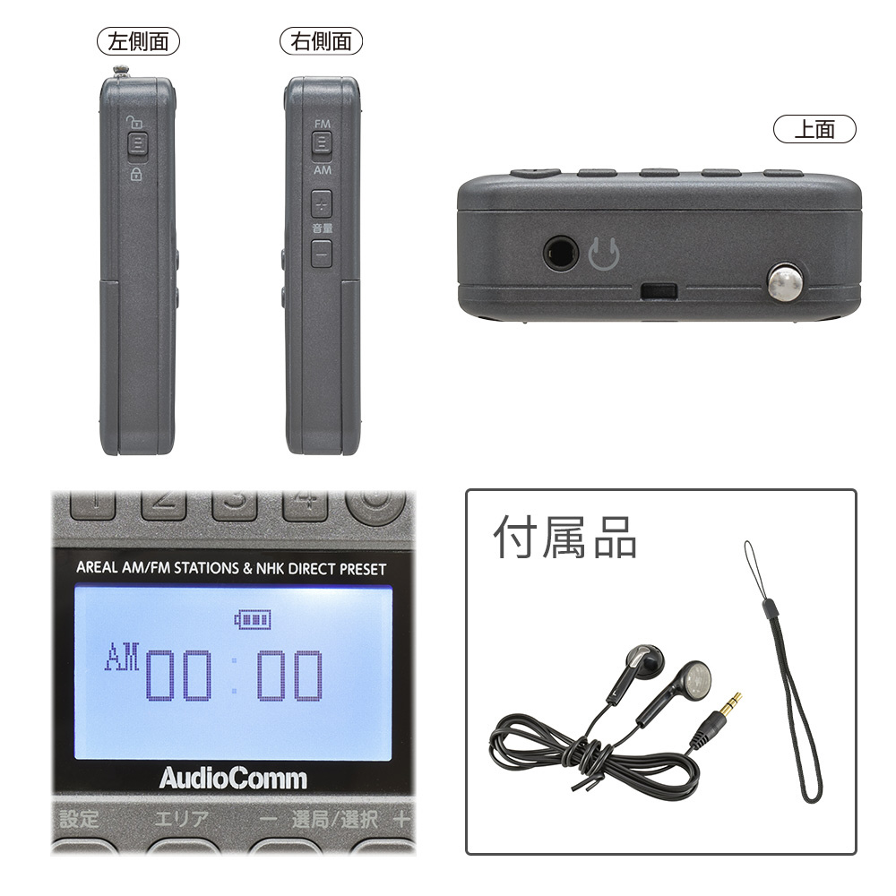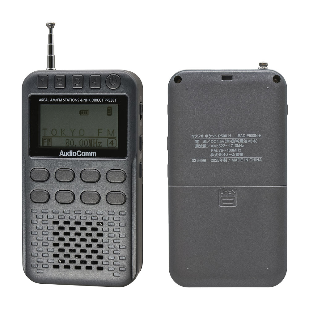 ポケットラジオ AudioComm ガンメタグレー RAD-P500N-H [ワイドFM対応 /AM/FM]