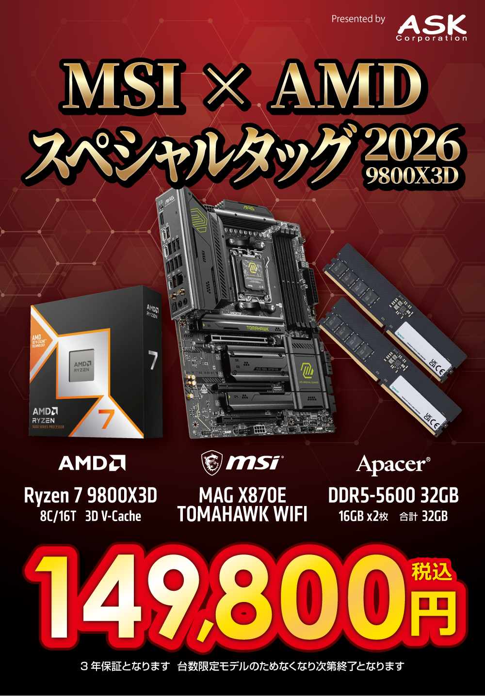 MSIxAMD スペシャルタッグ (9800X3D) 2026 X870E-R9800X3D-16GB2 [AMD Ryzen 7 /Socket AM5]