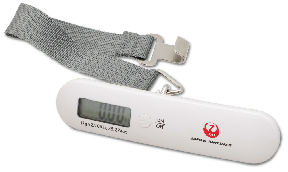 旅行荷物や宅配荷物など、吊り下げて荷物の重さがはかれる携帯ラゲッジスケール。JALオリジナルモデル