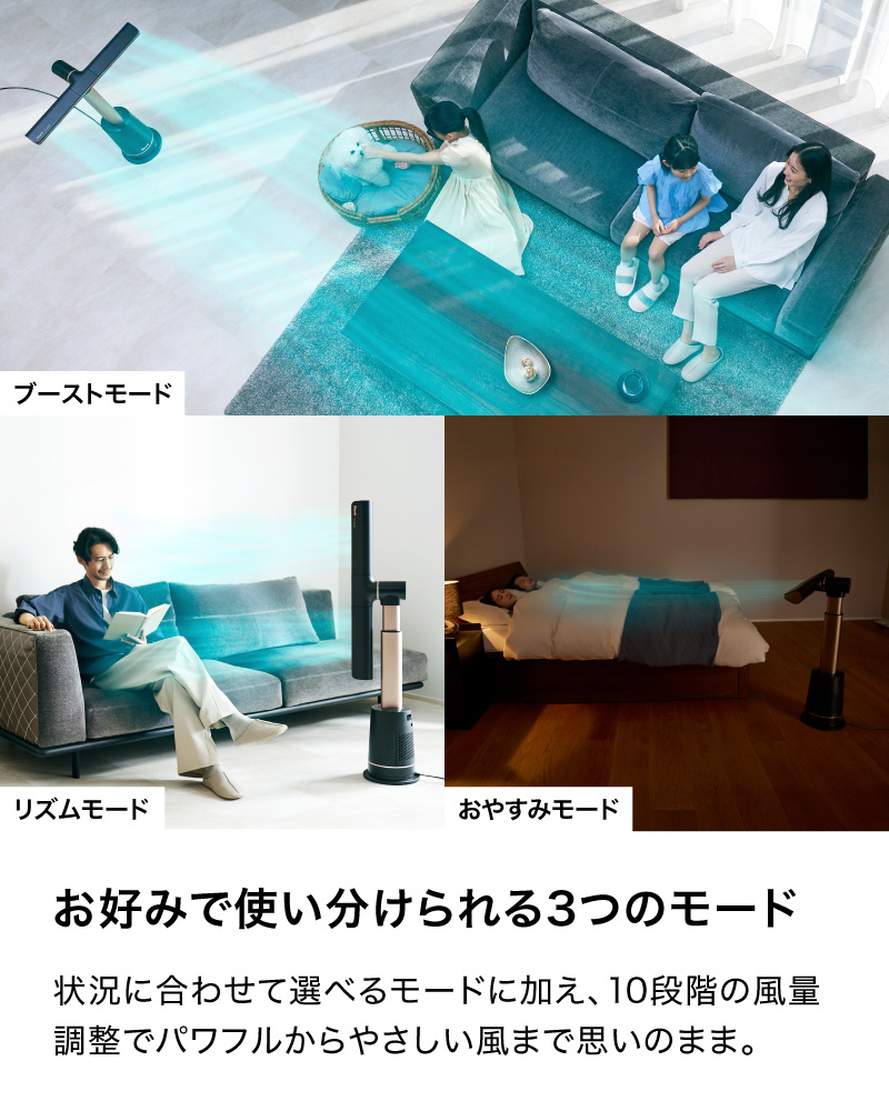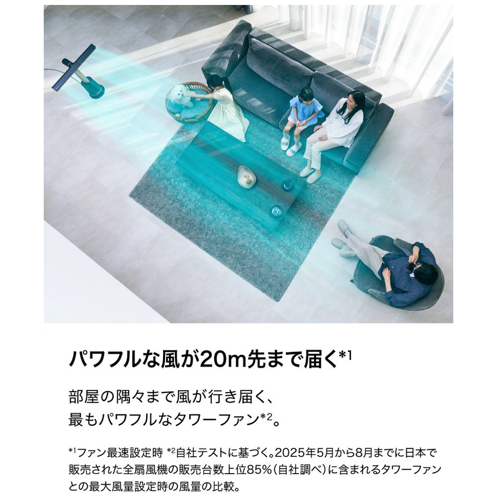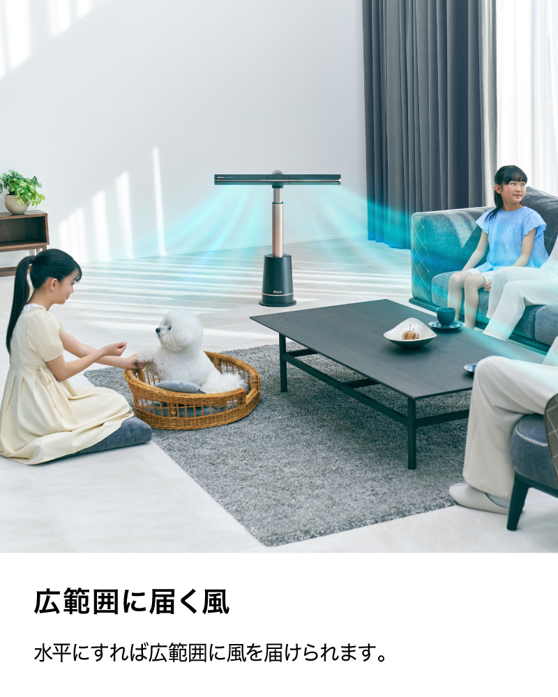 ■パワフルな風があらゆる向きに届くので、部屋の空気を効率よく入れ替えられる、パワフルなサーキュレーターとしても使えます。空気のよどみが気になる際に便利に使えます。