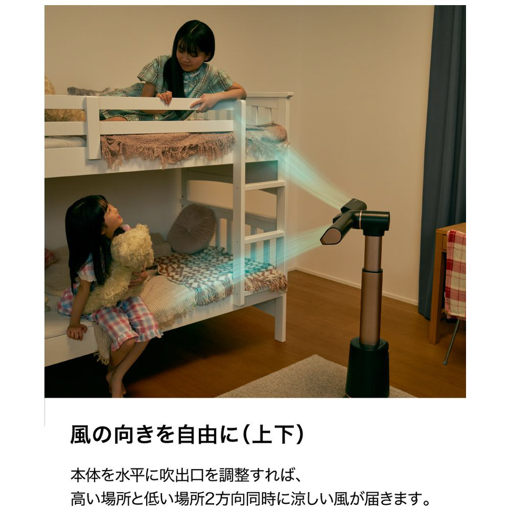 ■風を2方向に同時に出せるため、LDKのダイニングとキッチンにいる離れた場所の2人が同時に涼めたり、2段ベッドの上下にそれぞれ風を送ることもできます。