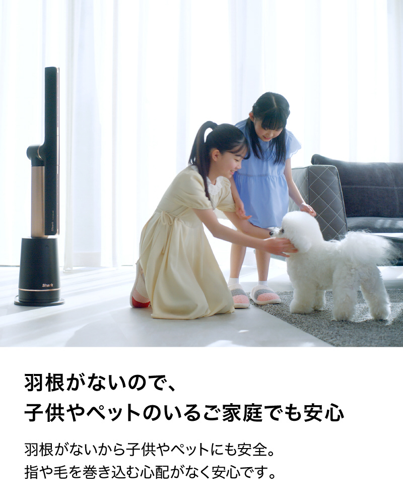 ■羽根がないから子供やペットにも安全。指や毛を巻き込む心配がありません。髪の毛の長い方も、紙が絡まる心配がないため、安心です。