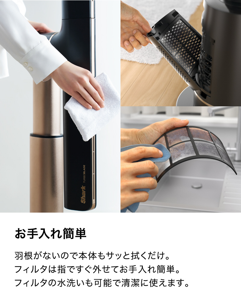 ■フィルタは指ですぐ外せてお手入れ簡単。フィルタの水洗いも可能で手間なく清潔に安心してお使いいただけます。