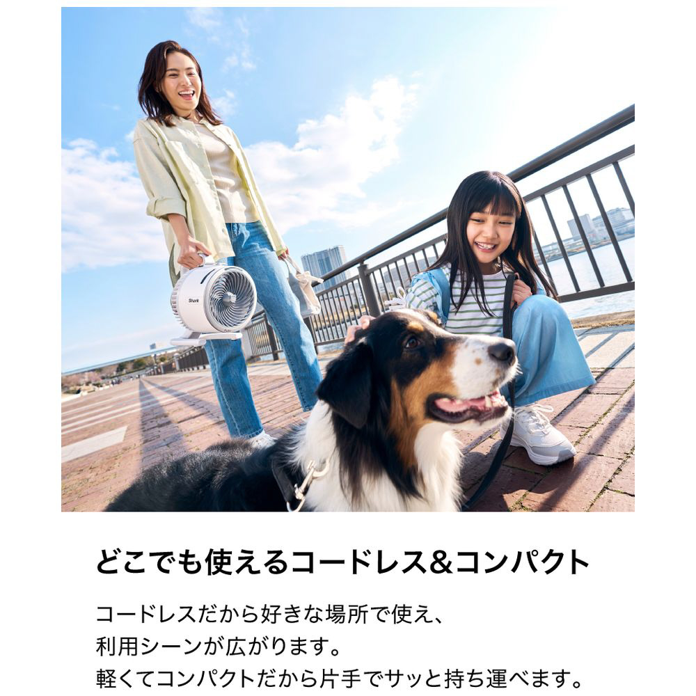 屋内でも屋外でも使えるミスト機能付きコードレスポータブルサーキュレーター