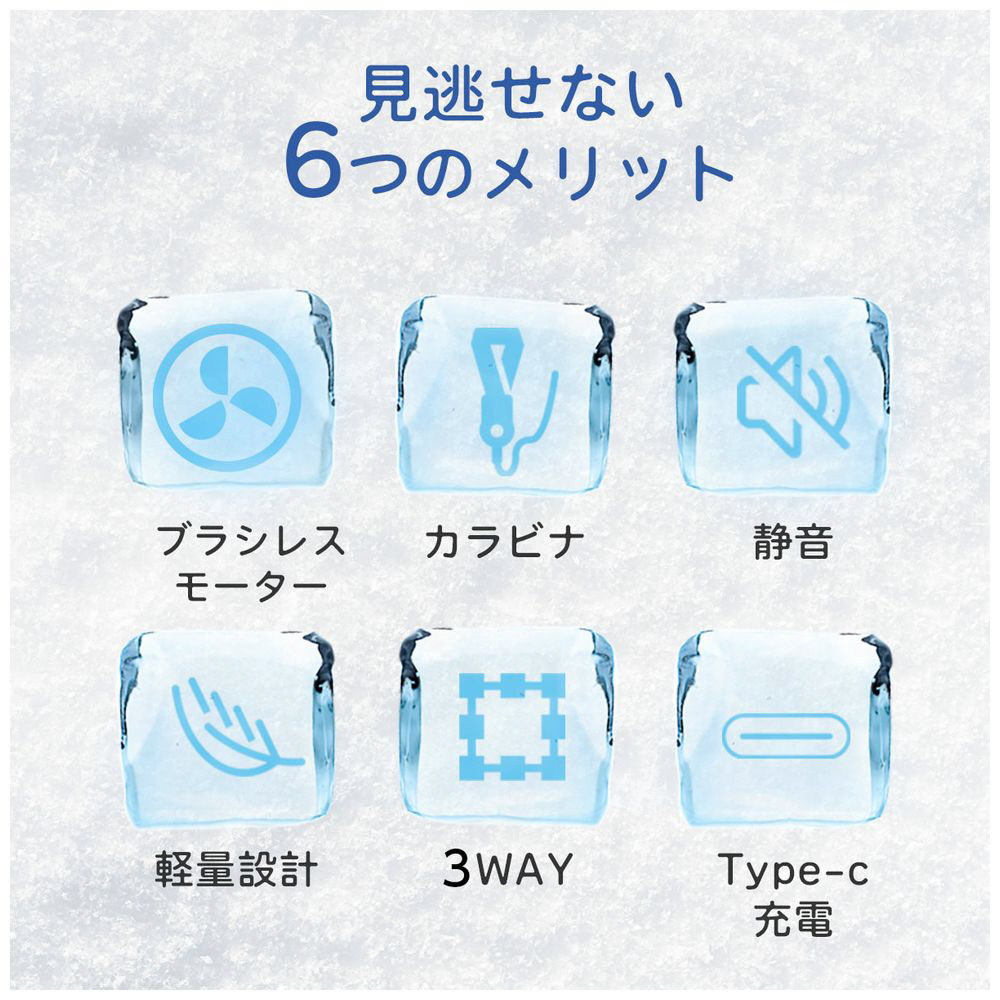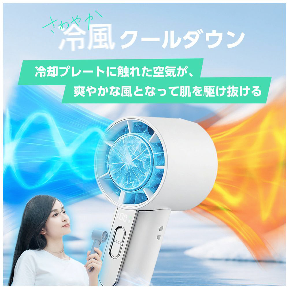 手持ち・首掛け・卓上の3WAY使用に対応。さらに氷冷プレート搭載で、さまざまなシーンで快適にお使いいただけます。