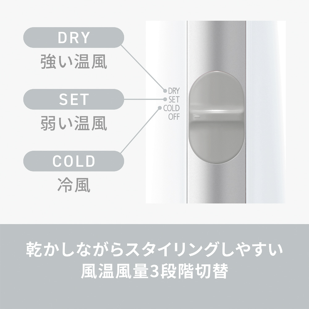 ■<選べる3段階切替で、温風でセットした髪を冷風でキープする、プロのテクニックが簡単に。