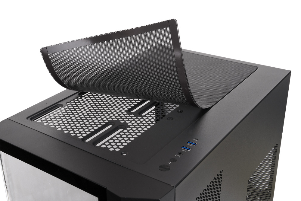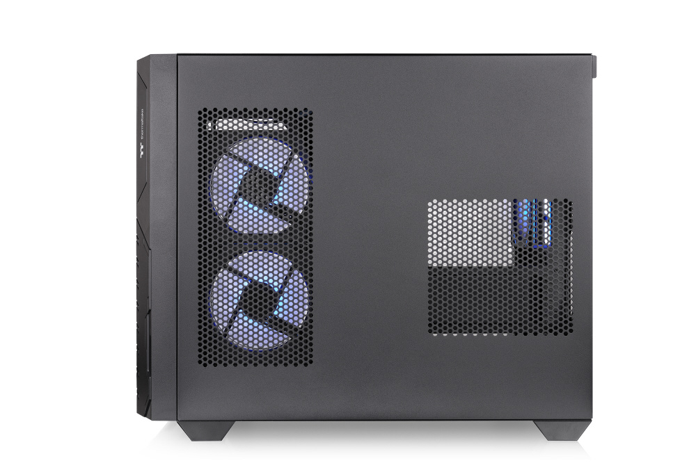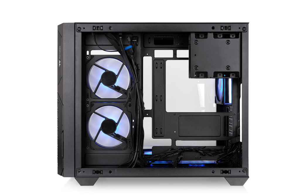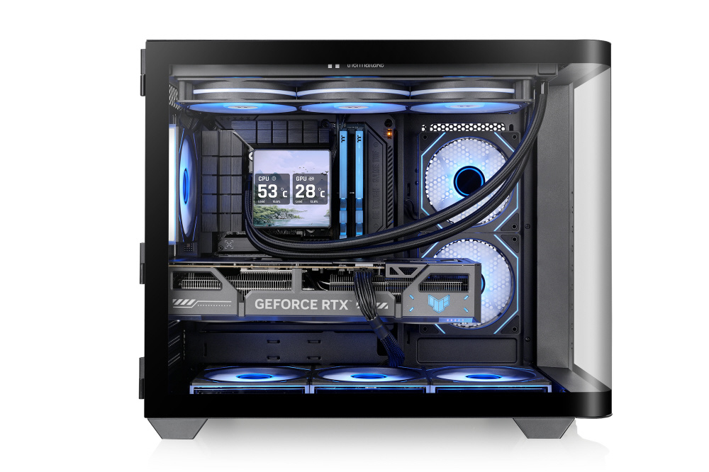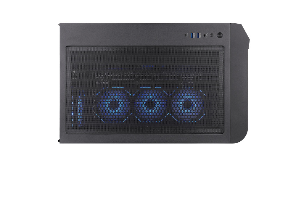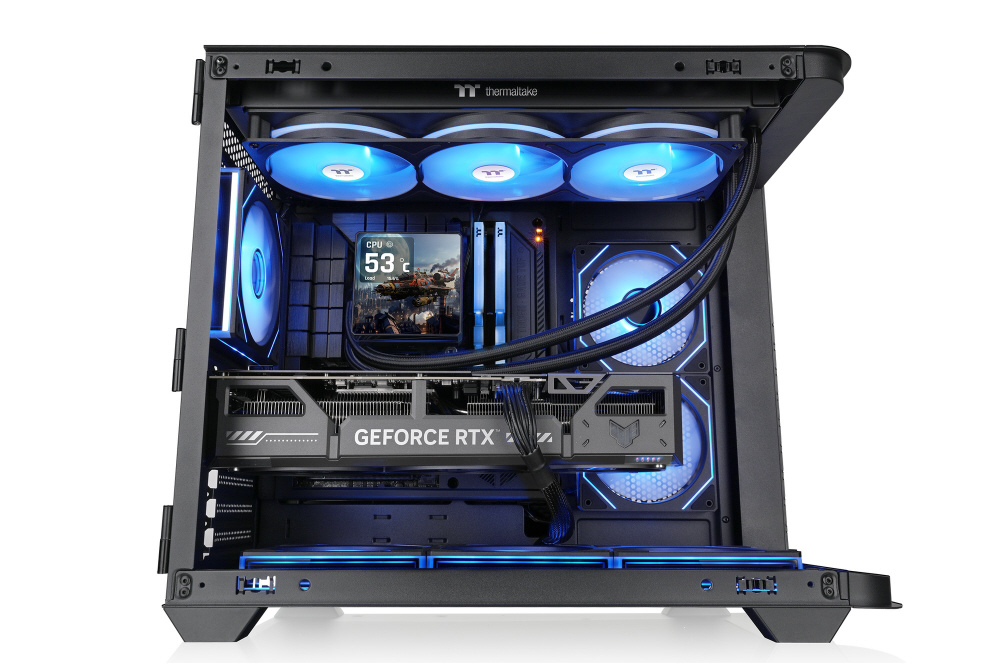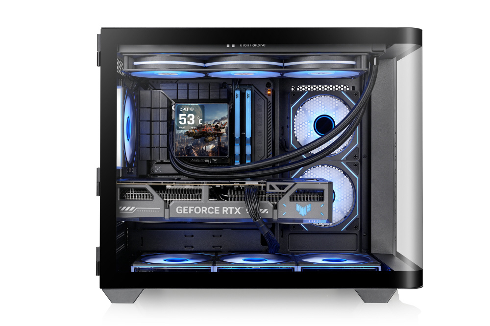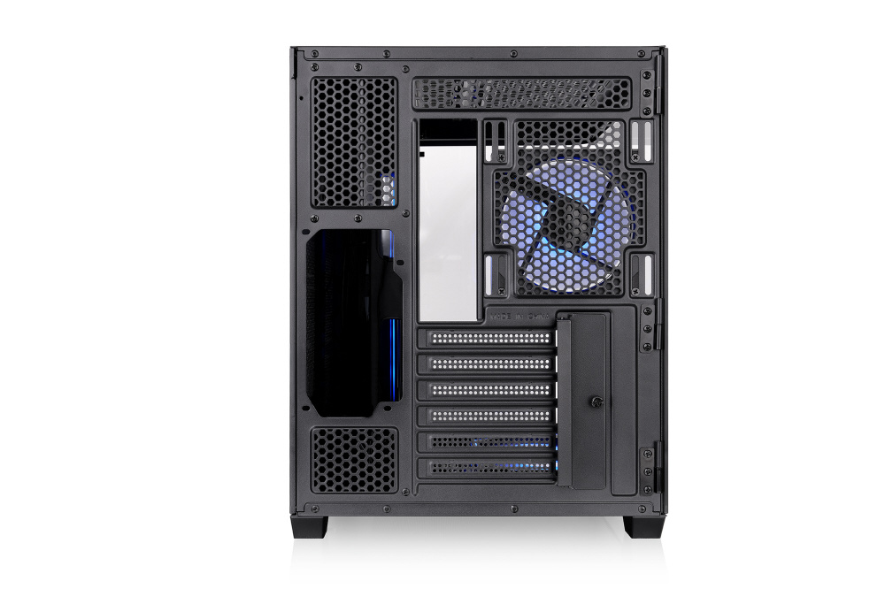 曲面強化ガラスパネルを採用したピラーレスデザイン。ARGBファンを6基備え背面コネクタ設計のマザーボードに対応したミドルタワー型PCケース