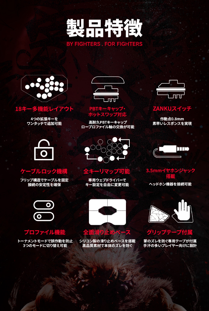 『ZANKUスイッチ』搭載0.8mm高速反応 / 1.8mm総ストローク