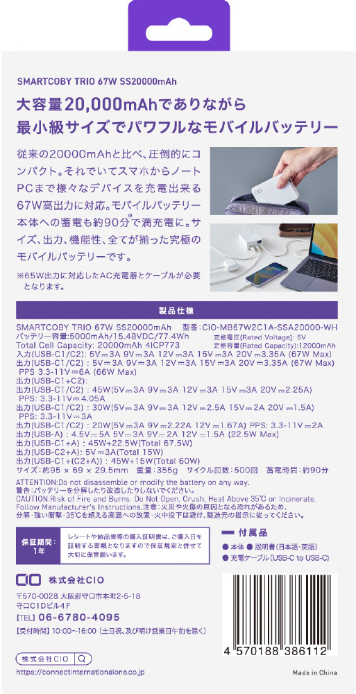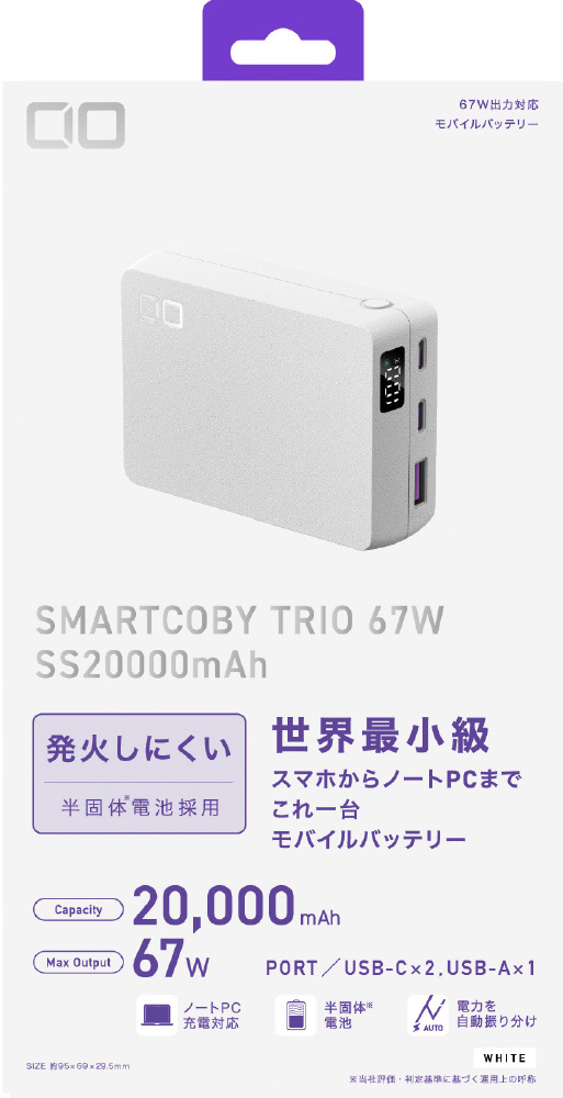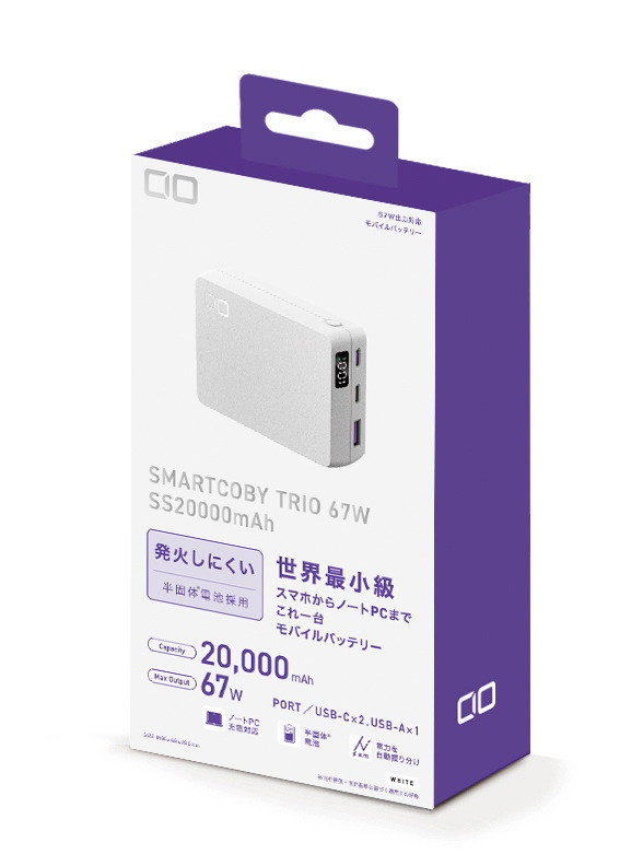 SMARTCOBY TRIO 67W SS20000mAh ホワイト CIO-MB67W2C1A-SSA20000-WH [USB Power Delivery対応]