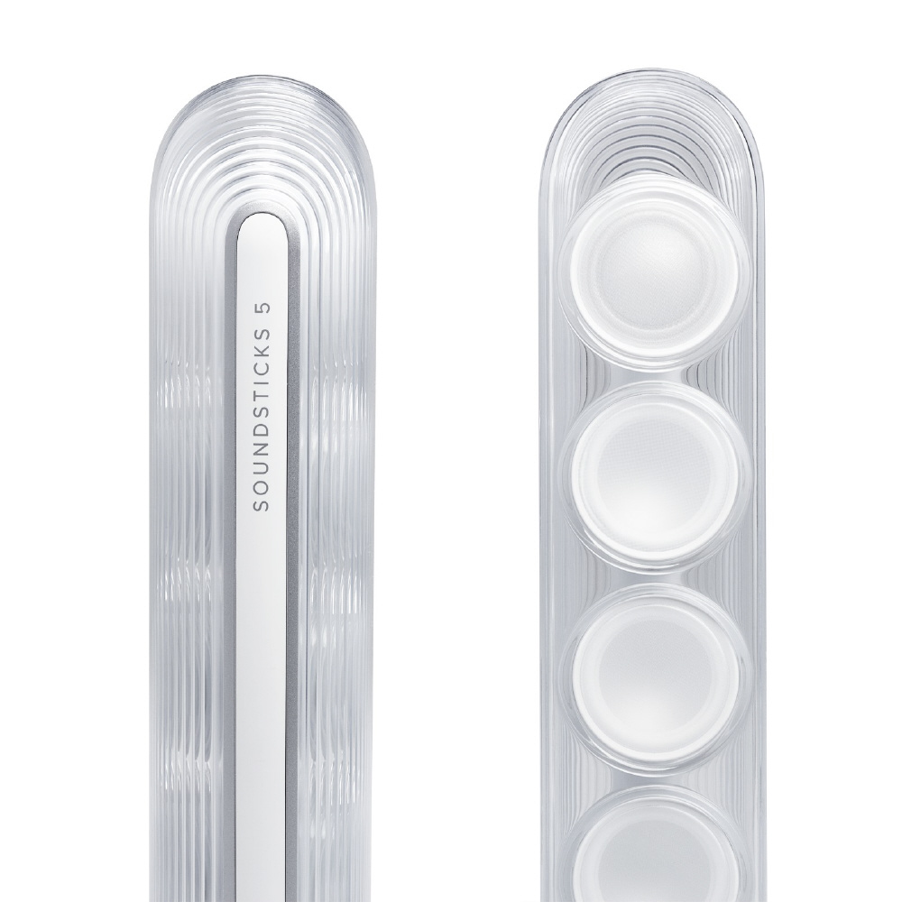 アイコニックな透明デザインを継承しつつ、スタイリッシュな色合いとメタリックアクセントを融合。浮かぶように配置されたサブウーファーが、洗練されたビジュアルをより一層際立たせます。