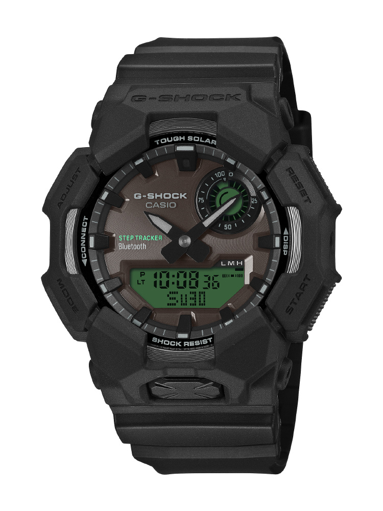 ベゼル・バンド・文字板にブランドの基調色であるブラックを採用し、フェイスの液晶部分にはエレクトログリーンのカラー印刷を施すことで、視覚的なアクセントとデザイン性を高めました。