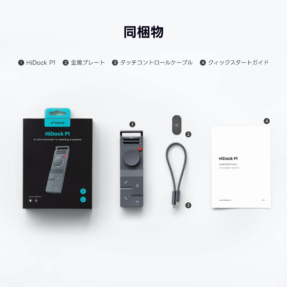 AIボイスレコーダー 録音/文字起こし/要約/議事録 ワイヤレスイヤホン対応 HiDock スペースグレー P1-Dark [64GB /Bluetooth対応]