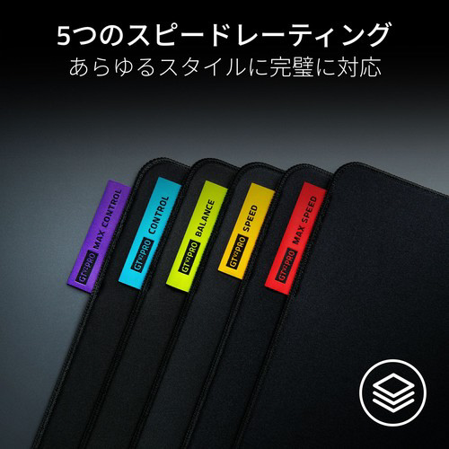 最大限のコントロール、スピード、あるいはそのバランスを追求する場合でも、あらゆるプレイスタイルに合わせたソフトeスポーツゲーミングマウスマットで、あなたの精度をパーソナライズできます。特殊な織りと独自のグライドコアフォームで作られ、5つのスピード指定から選べます。