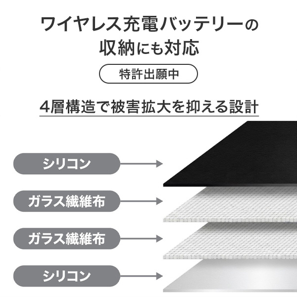 4層構造(シリコン・ガラス繊維布・ガラス繊維布・シリコン)で被害拡大を抑える設計。