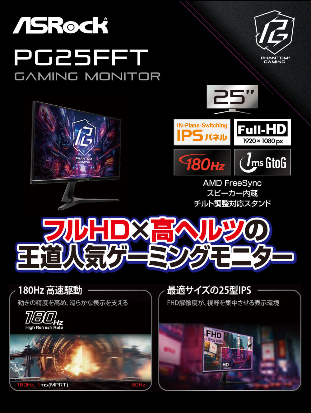 | 商品名 | PG25FFT ASRock ゲーミングモニター [25型 /フルHD(1920×1080) /ワイド /180Hz] |