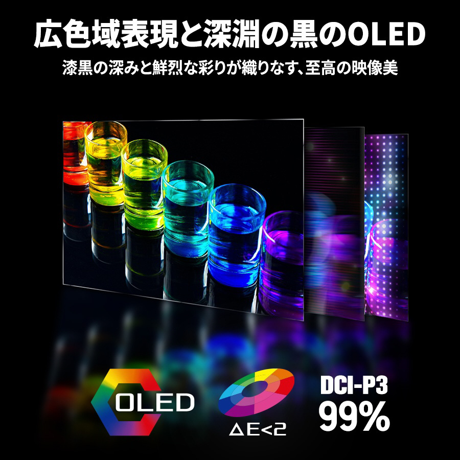 | 輝度 | 275cd/m2(SDR)/最大1300cd/m2(HDRピーク) |
