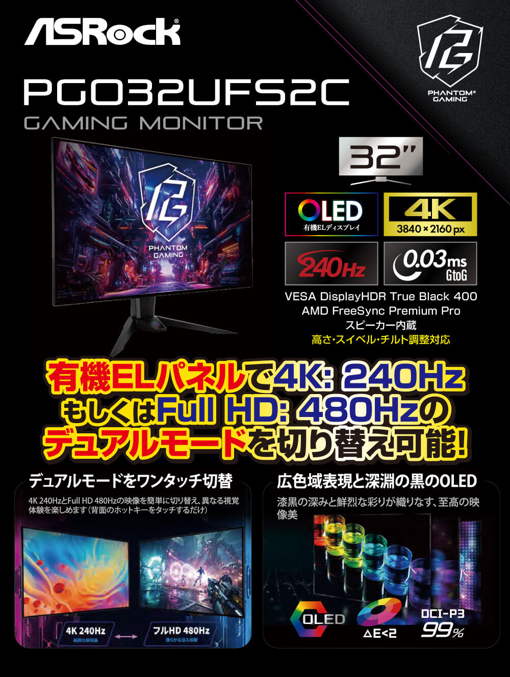 | 商品名 | PGO32UFS2C ASRock ゲーミングモニター [31.5型 /4K(3840×2160) /480Hz] |