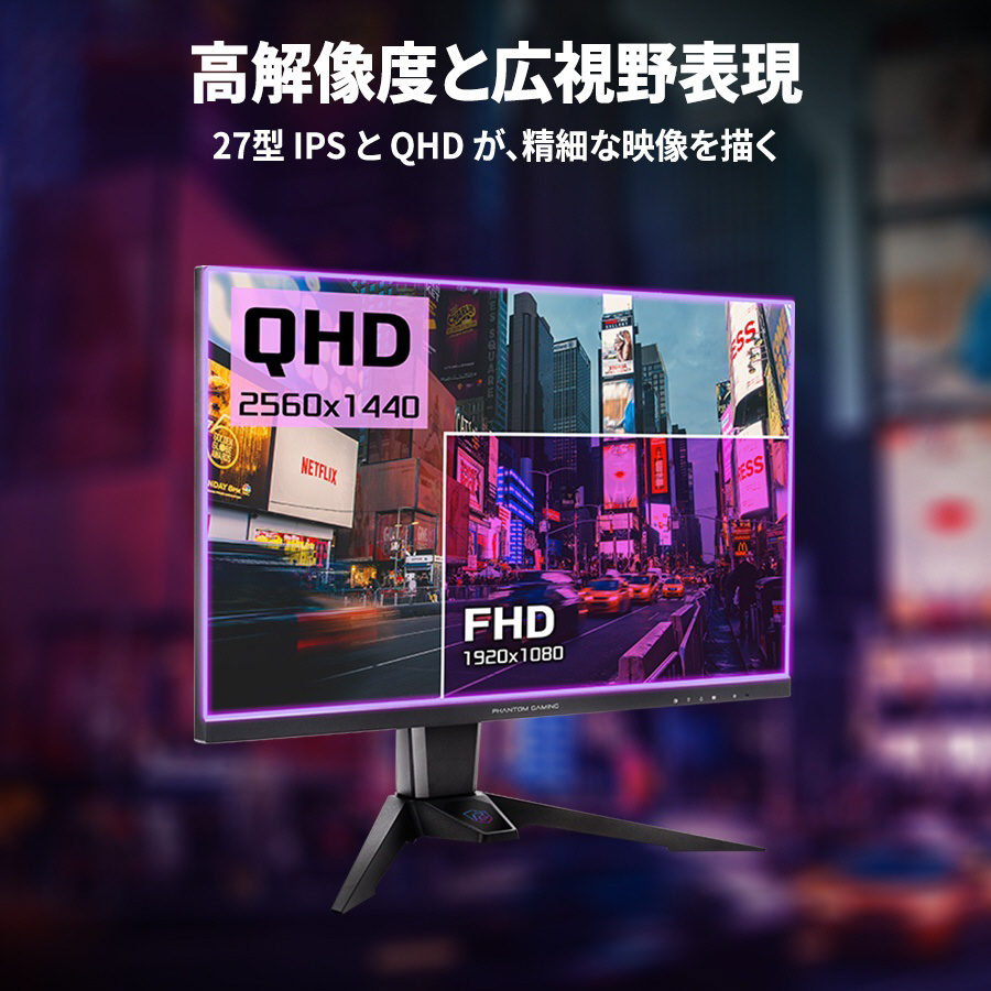 | 付属品 | HDMIケーブル、DisplayPortケーブル、電源コード、クイックスタートガイド、Phantom Gamingケーブルスリーブ |