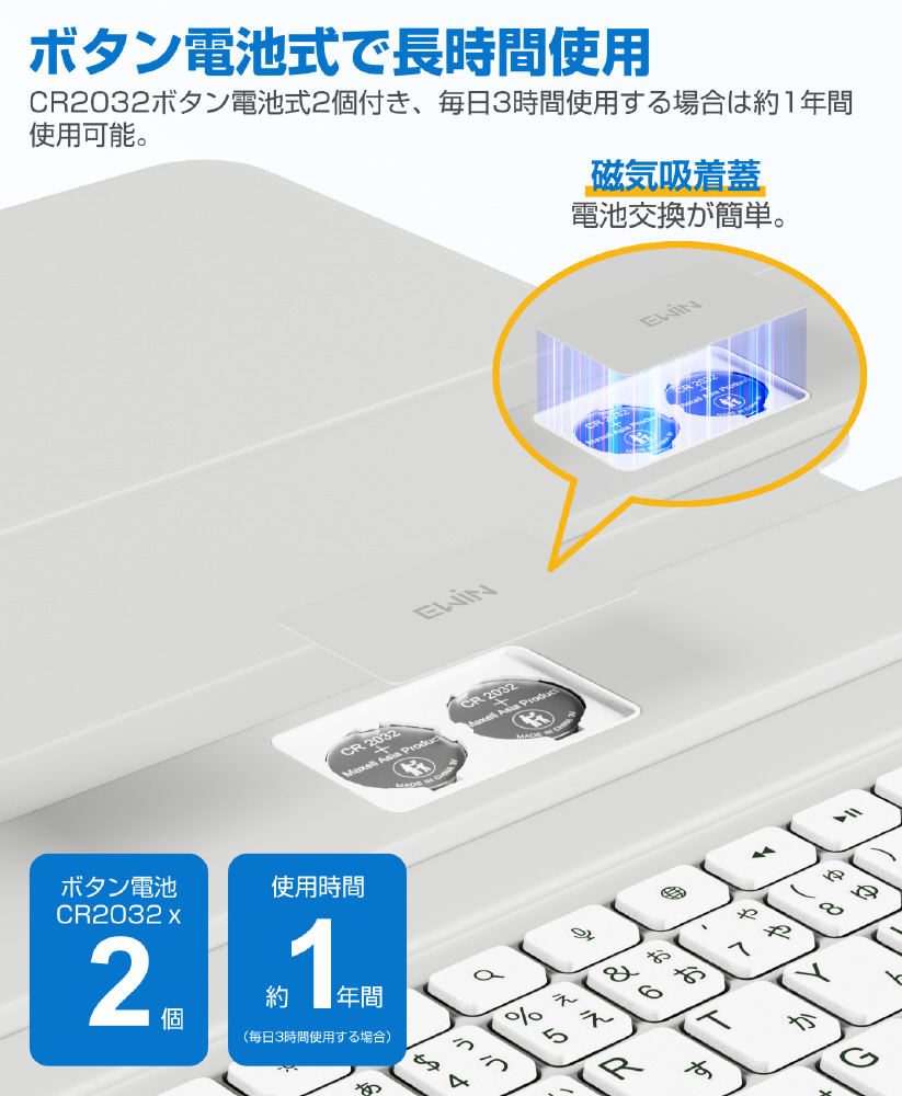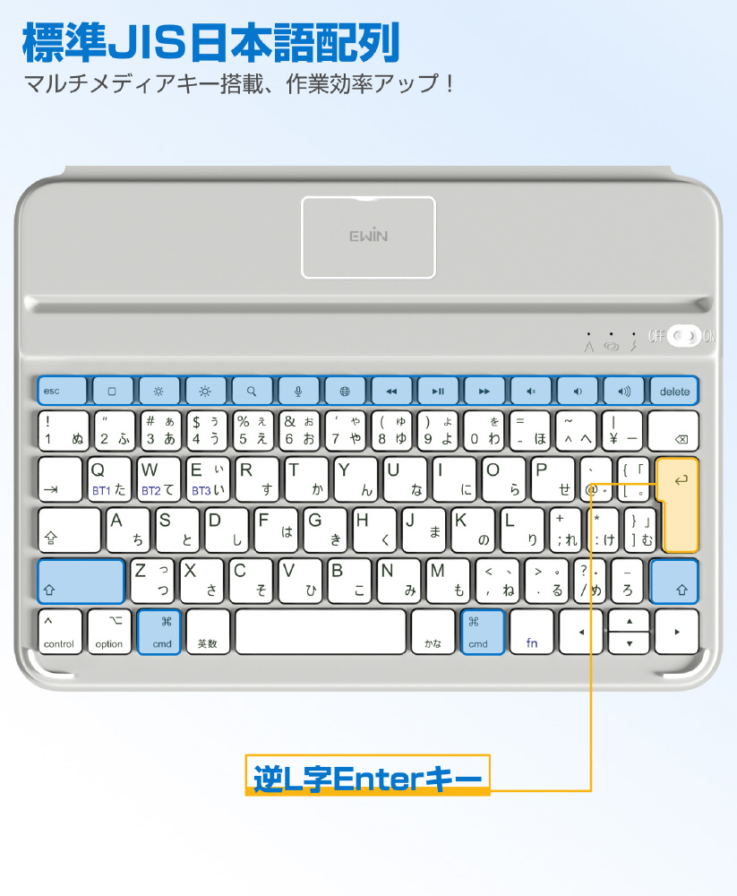 11インチiPad Air(M3/M2)、10.9インチ iPad Air(第5/4世代)、11インチ iPad Pro(第4/3/2世代)用 キーボード付きケース AirSlim Folio グレー/ホワイト EW-BK033-01-GYWH