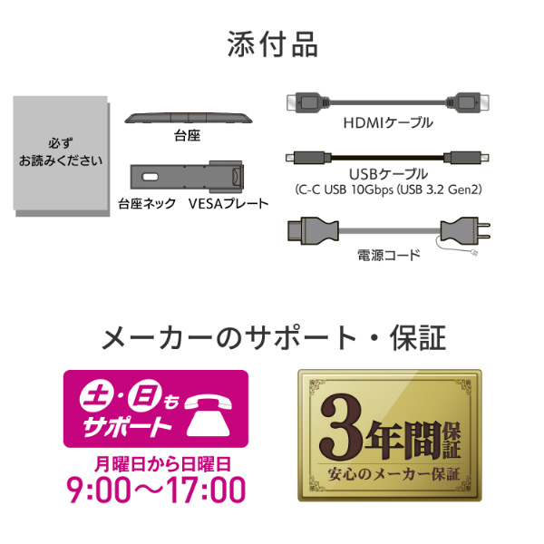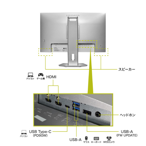 さらに、USBハブ(USB-A×2)を搭載しているため、マウスやキーボード、Webカメラの接続にも便利です。