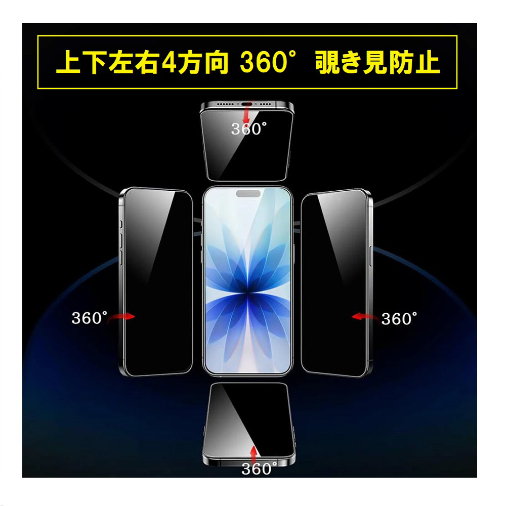 360°覗き見防止保護ガラスフィルムで、上下左右の4方向から360度(正面は約25度の視角)の