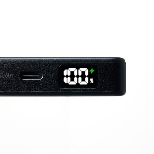 LEDパネルでバッテリー残量を1%単位で確認しながら使えます。事前にモバイルバッテリーを充電する際などに便利です。