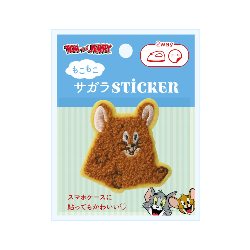 もこもこしたサガラ刺繍が可愛い「トムとジェリー」デザインのステッカーです。