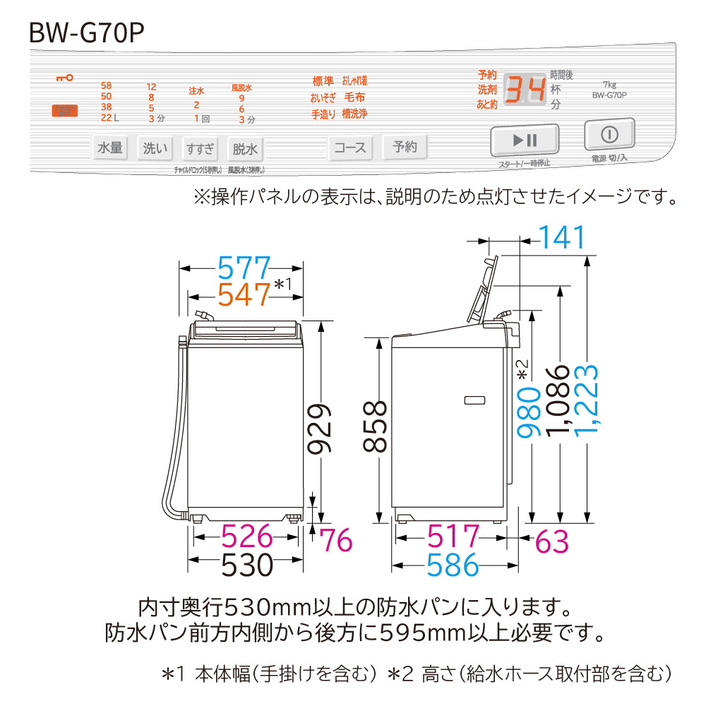 | 商品名 | 全自動洗濯機 ビートウォッシュ ホワイト BW-G70P-W [洗濯7.0kg /乾燥機能無 /上開き] |