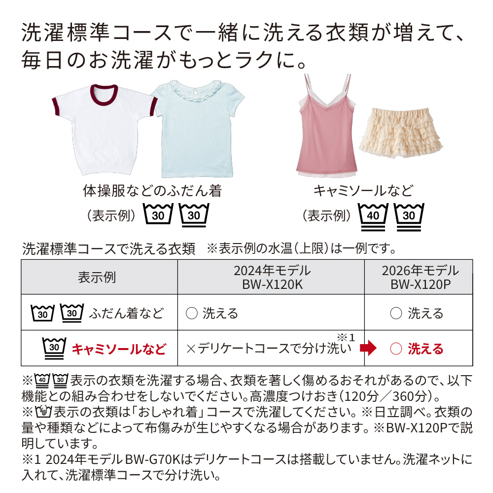 さらに布傷みを抑えた洗い方により、非常に弱く洗う取扱絵表示の衣類も洗濯標準コースで一緒に洗えて、毎日のお洗濯をラクにできます。