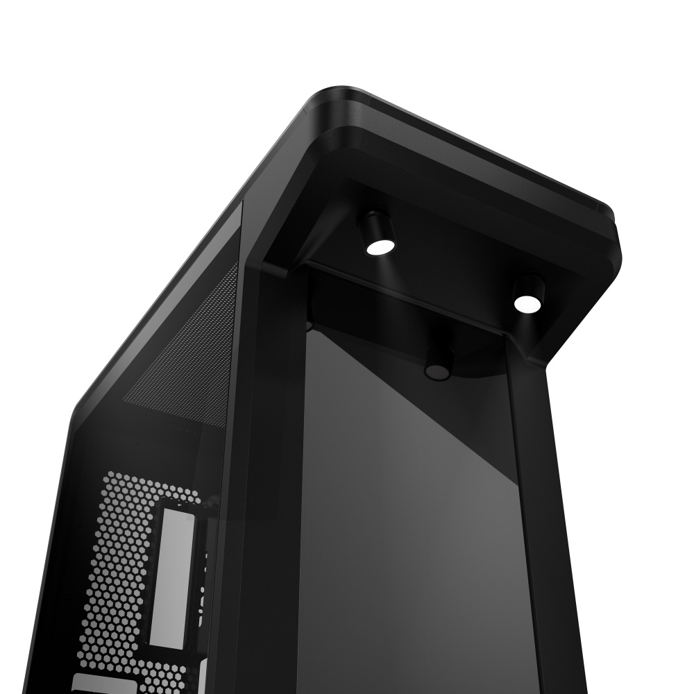 フィギュアやプラモデルなどが置けるフロントステージを備えたショーケース型PCケース