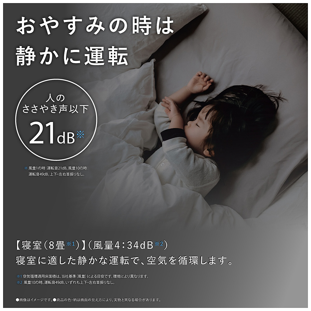 寝室に適した静かな運転で、空気を循環します。