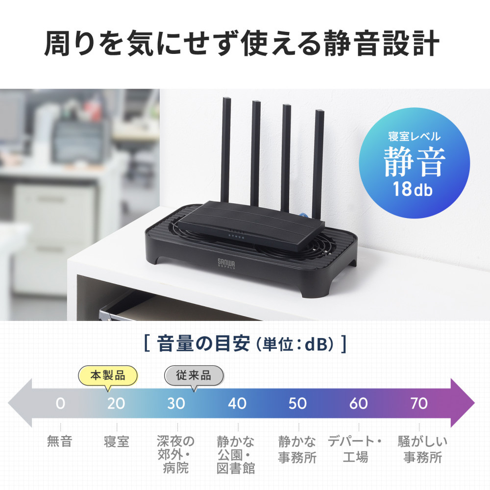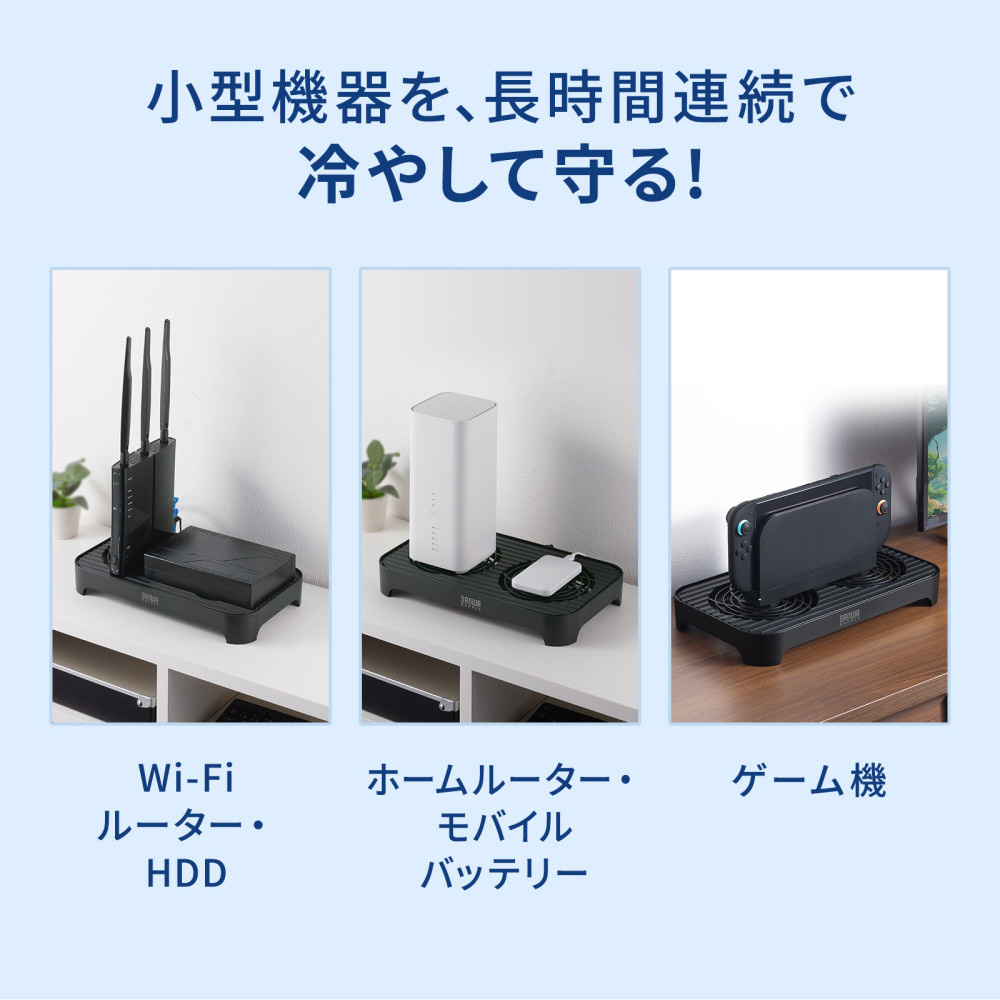 ■Wi-Fiルーターやネットワーク機器など、各種周辺機器の熱を効率よく逃がし、安定稼働をサポートします。