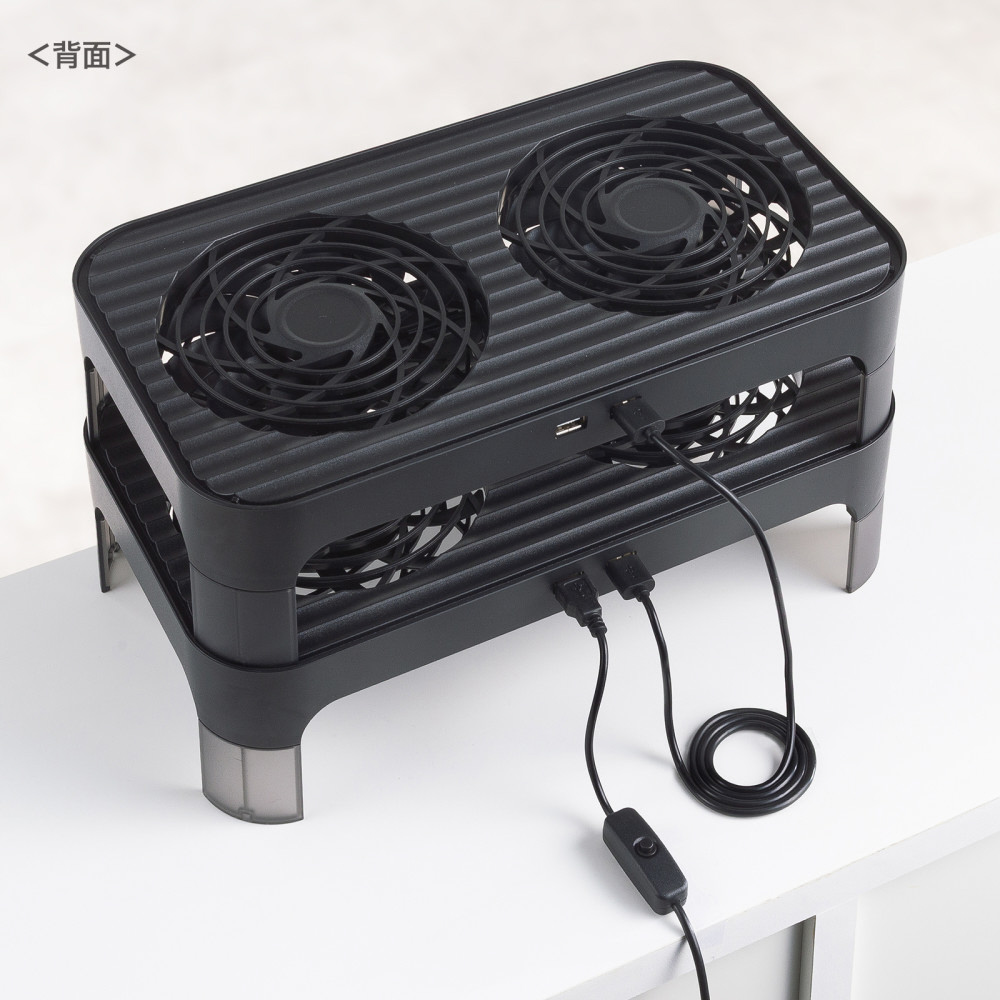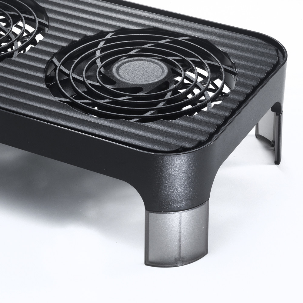 ■静音ファンを2基搭載しているため、1台の機器はもちろん、2台の機器も同時に冷却できます。