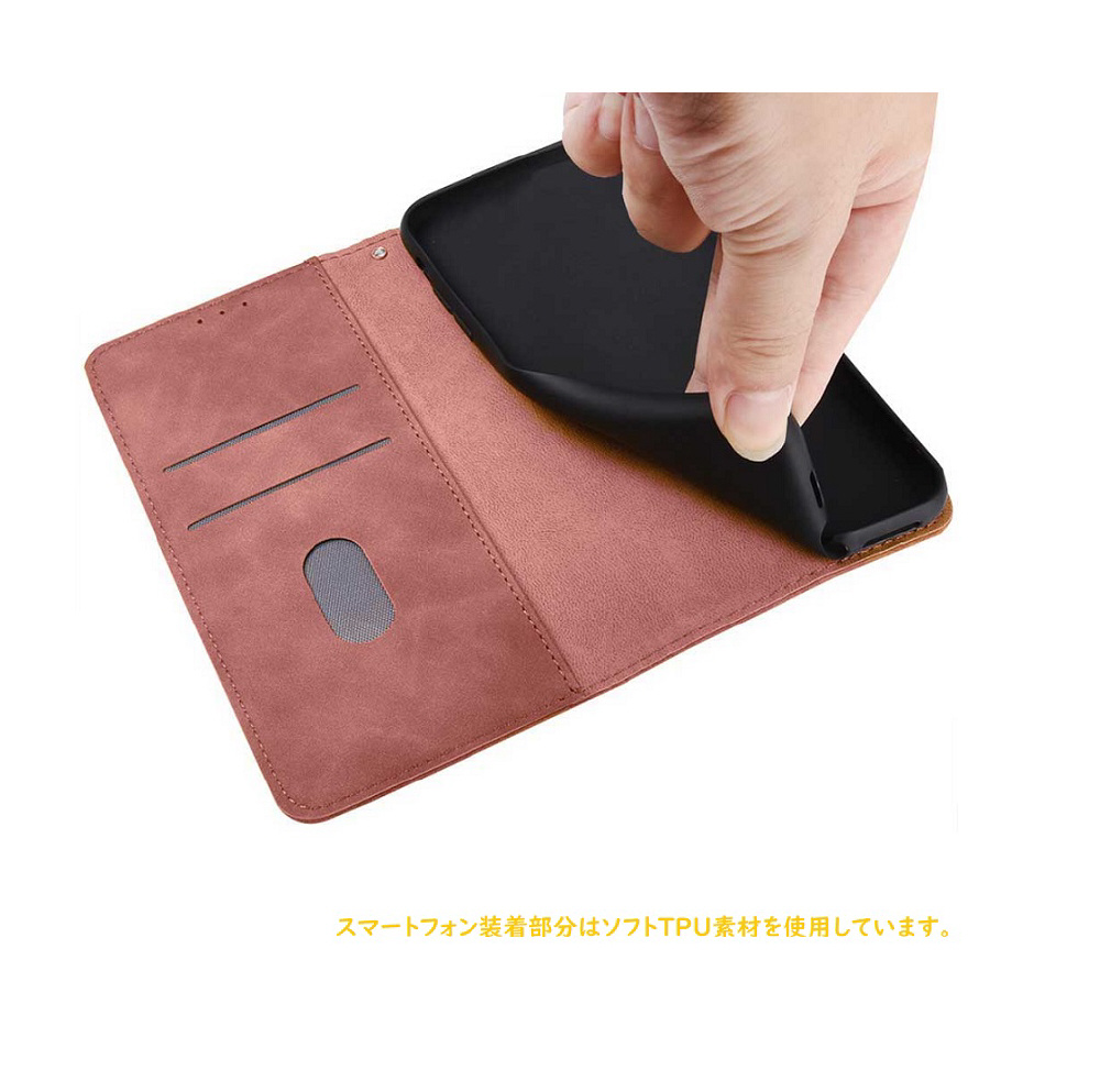 PUレザーの手帳型ケースです。ハンドストラップ付き。