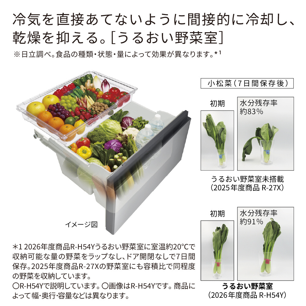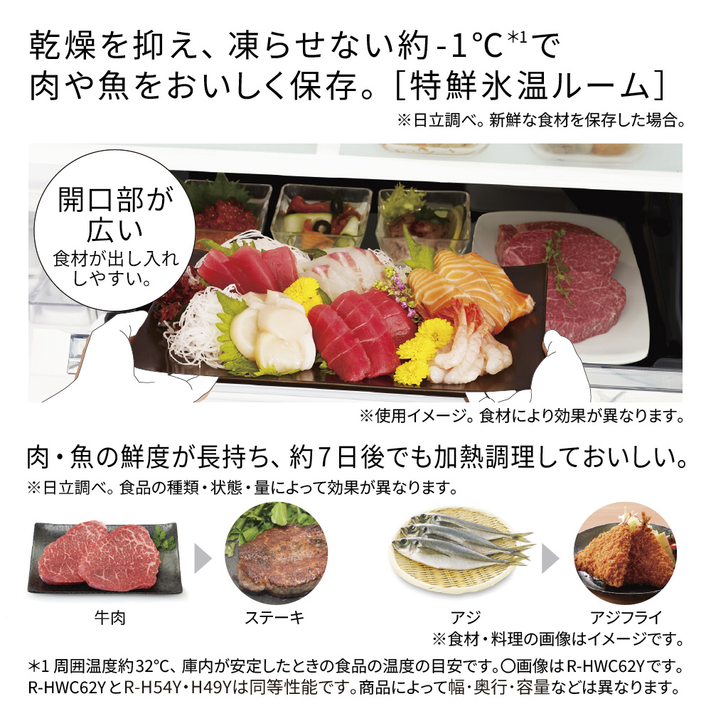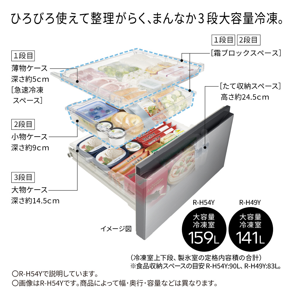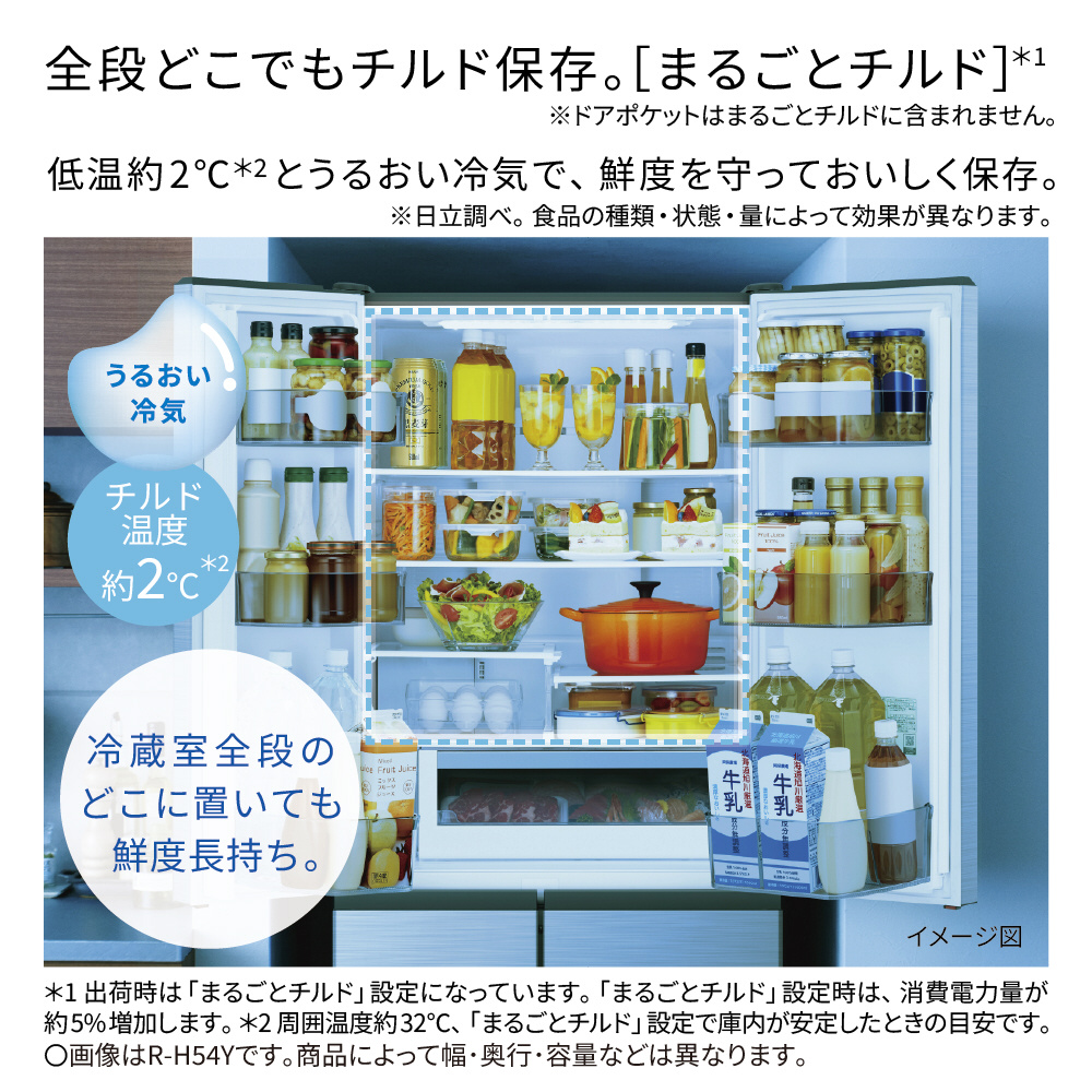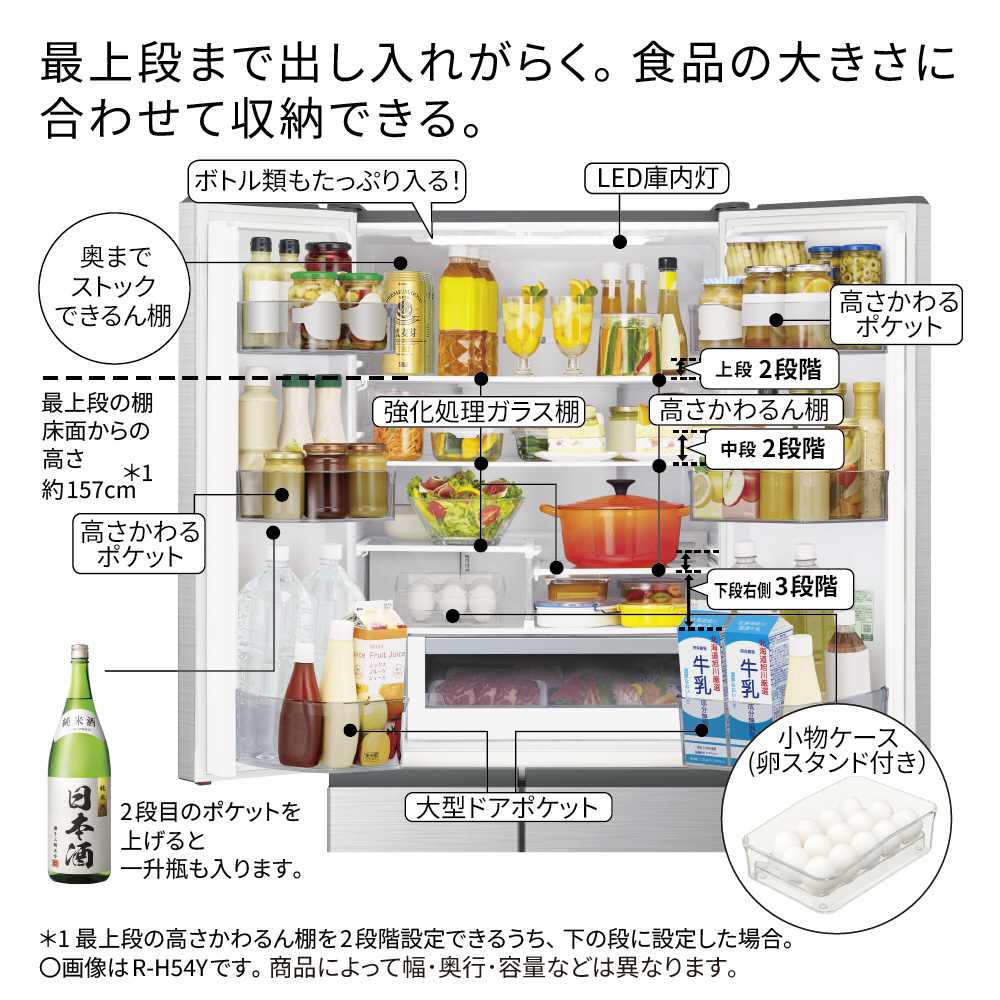 冷蔵庫 Hタイプ ライトシルバー R-H54Y S [幅65cm /540L /6ドア /観音開きタイプ /2026年]