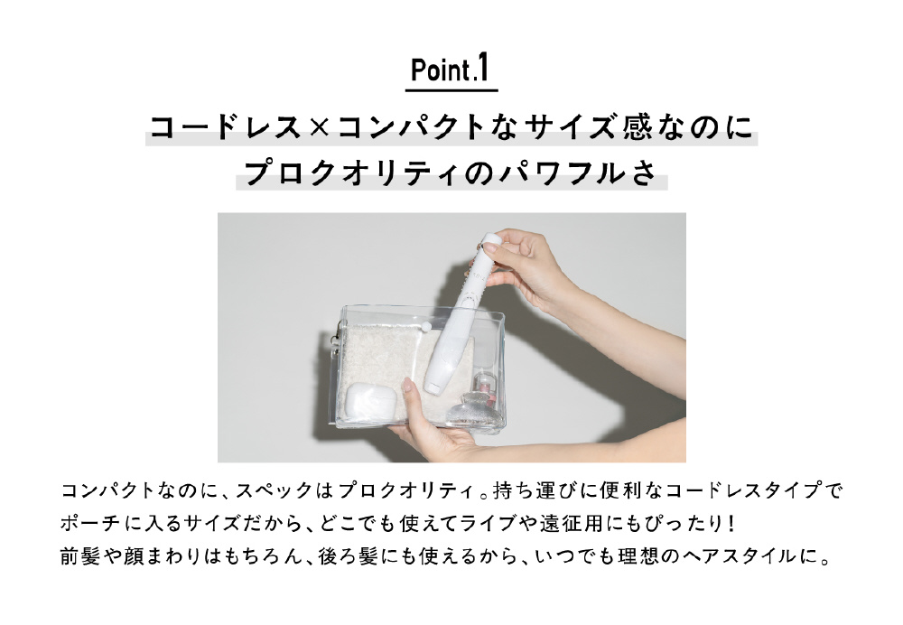 前髪や顔まわりはもちろん、後ろ髪にも使えるから、いつでも理想のヘアスタイルに。