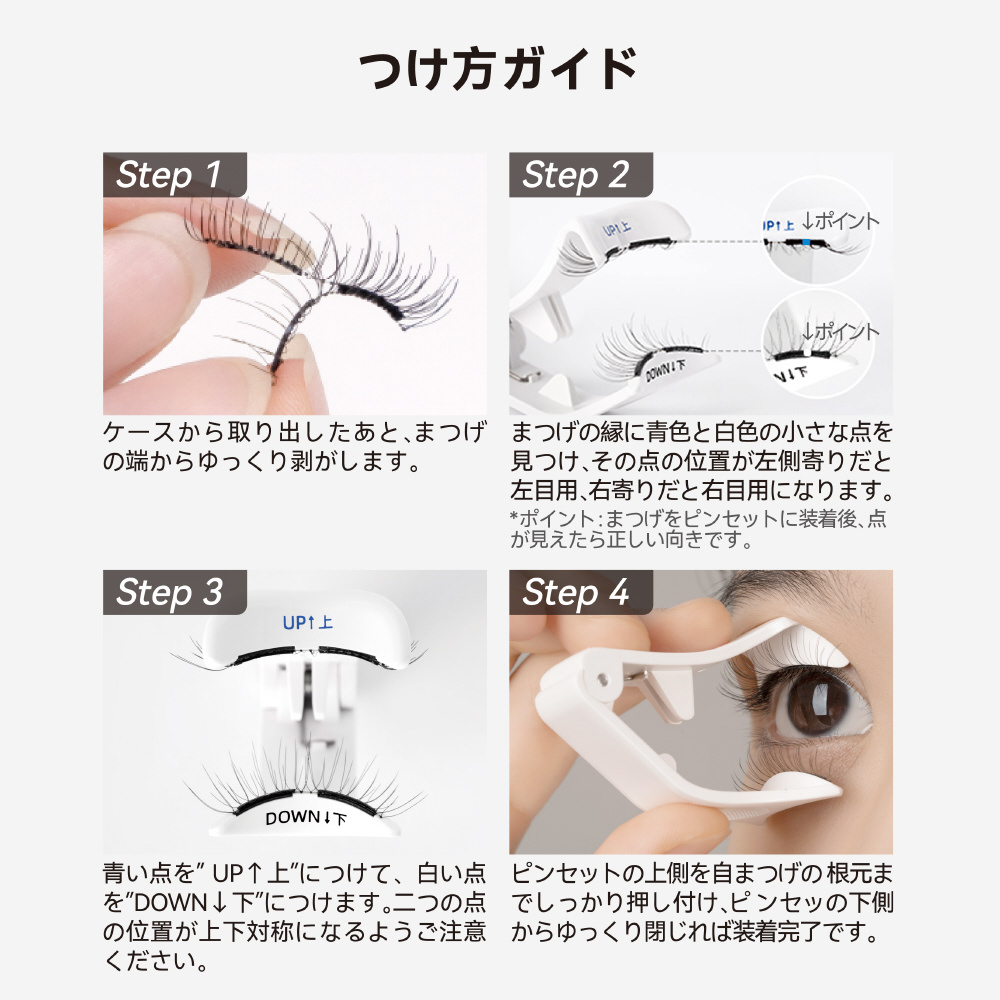 接着剤いらずで繰り返し使用でき、自まつげや目に優しい。挟むだけですぐ付けられて、日々のメイクが時短に。