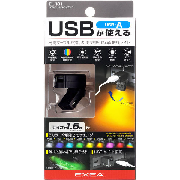 EL181 USBポート付スイングライト 120°首振り USB-Aポートの搭載