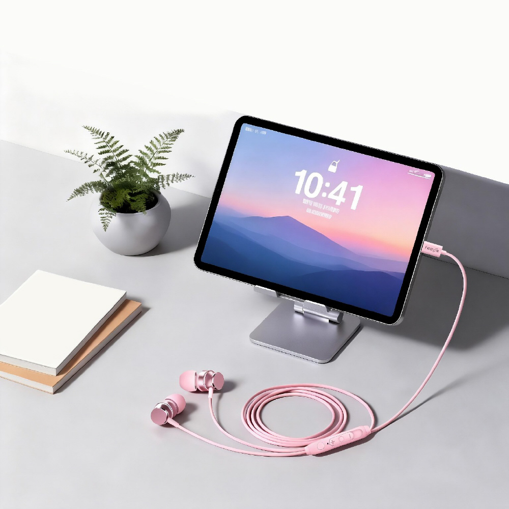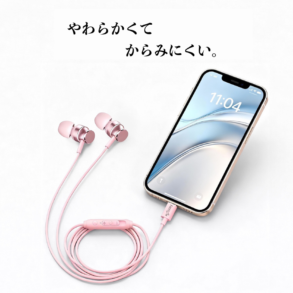 柔らかく絡みにくいシリコンケーブルを採用したType-Cイヤホンです。カナル型デザインにより遮音性とフィット感に優れ、マイク付きリモコンでハンズフリー通話にも対応。さらに、スライド式の音量調整機能により、音量を細かく調整できます。