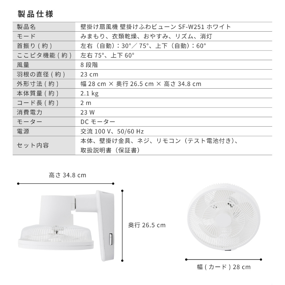 | 商品名 | 壁掛け扇風機 壁掛けふわビューン ホワイト SF-W251 [リモコン付き] |