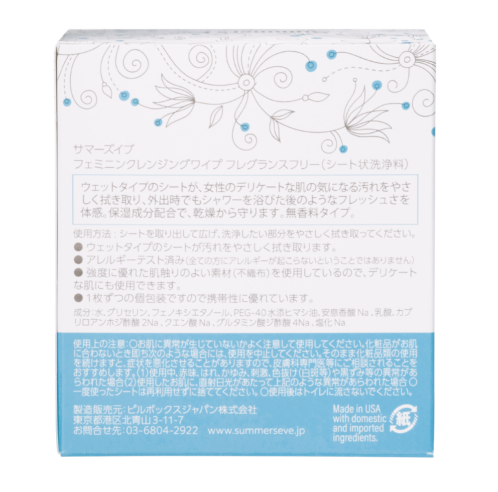 | 商品名 | サマーズイブ フェミニンクレンジングワイプ フレグランスフリー 12枚入 |